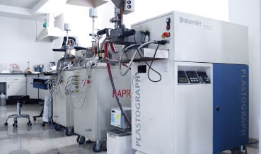 In the R&D center, we equip with all facilities necessary for the research and product development, these equipment include: various chemical, optical and physical measuring instrument, two roll mills, brabenders, lab extruders, congo red test machine, all sorts of mixers, ovens, all sorts of instruments for test of raw material property and performance etc..